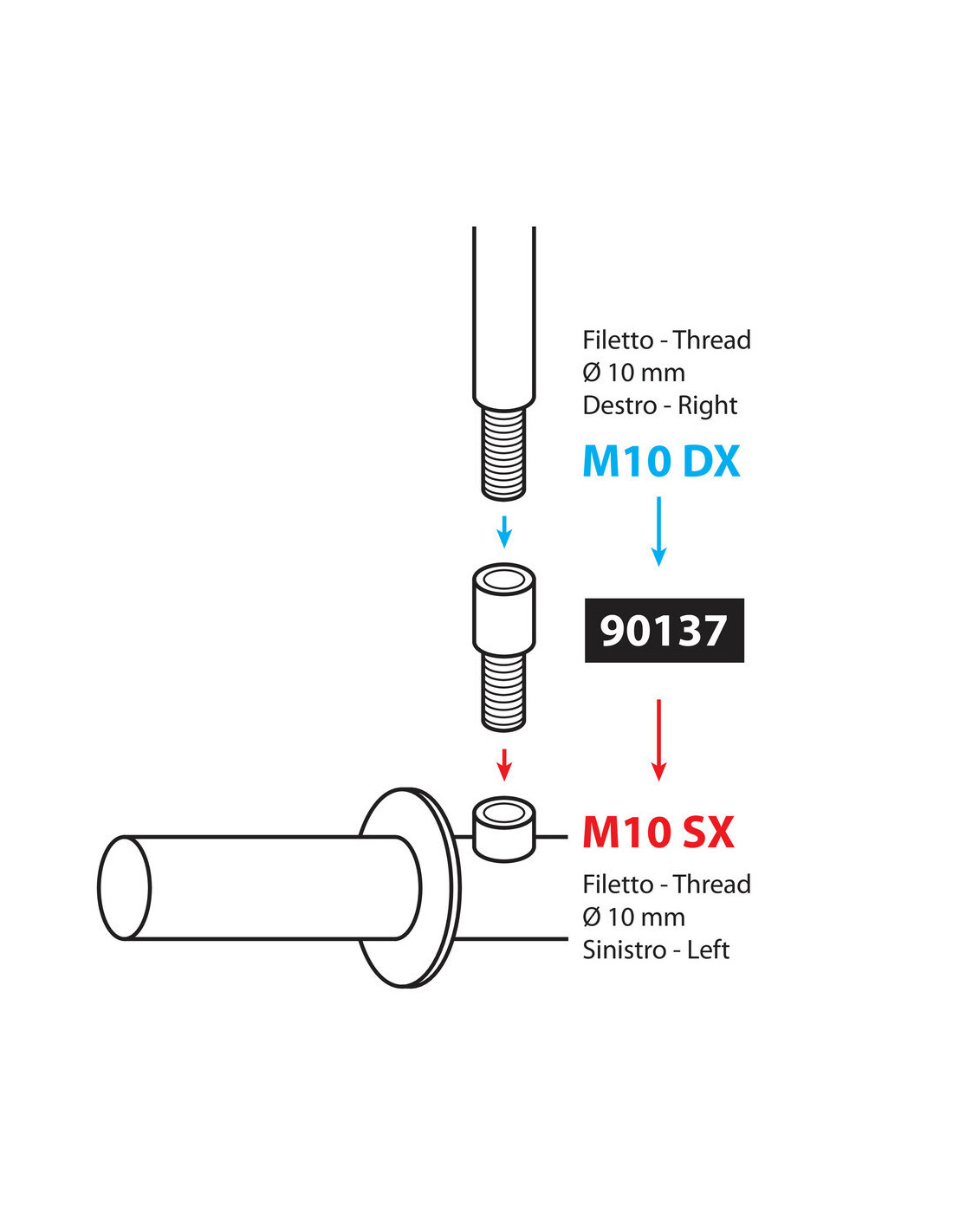 Filetage ø 10 mm droite > ø 10 mm gauche