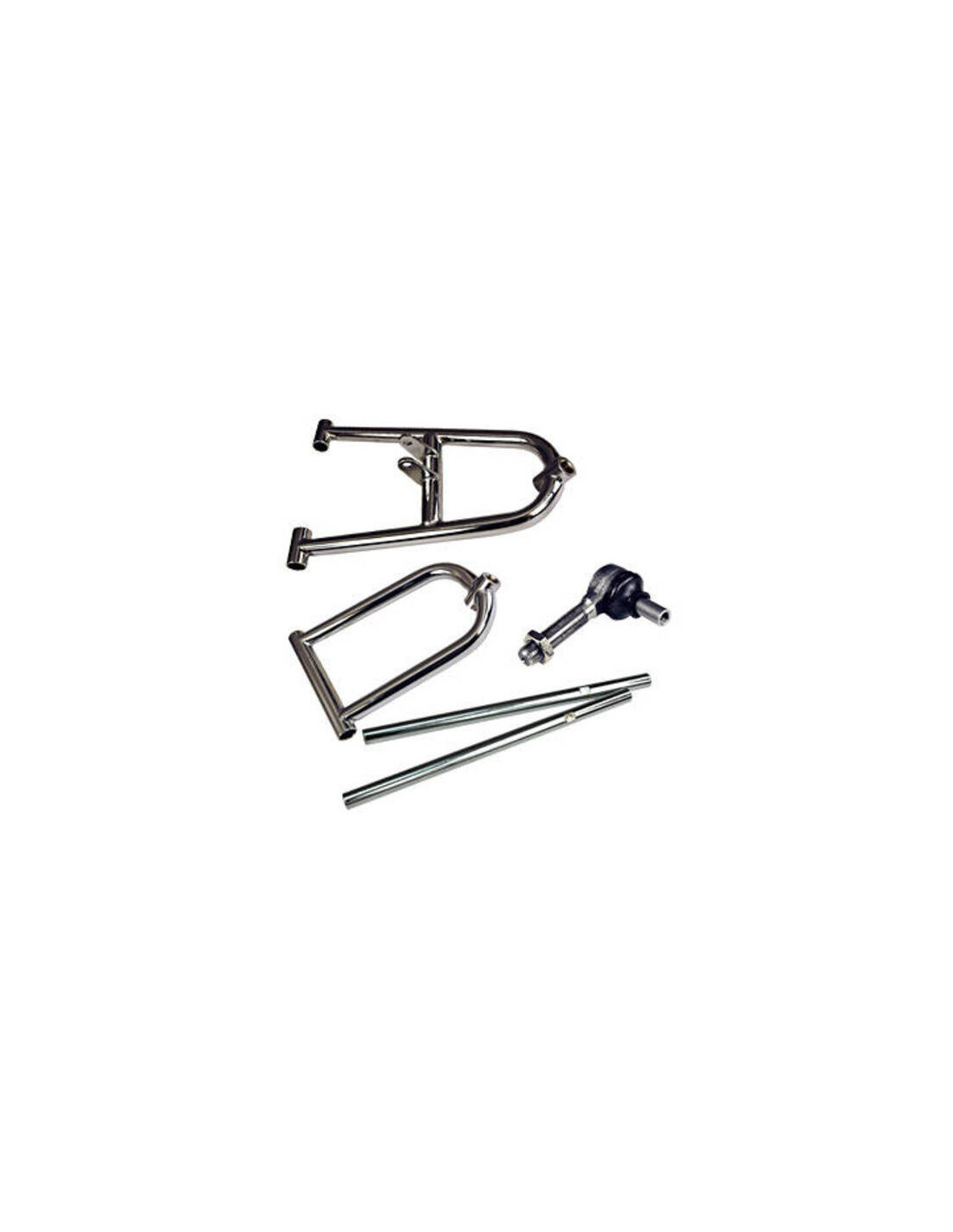 Kit complet prêt à poser : triangles, biellettes, rotules Acier triple chrome Empattement + 10 cm