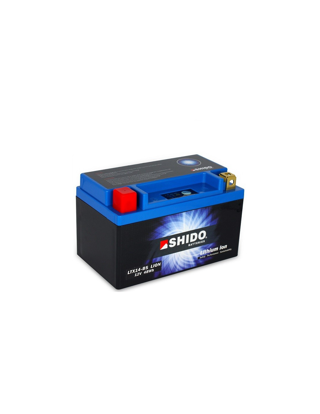 Batterie Lithium Ion SHIDO LTX14-BS LION Dimension Longueur : 150 largeur : 87 Hauteur : 145 Poids : 1,1 Kg. AH 4 CA 240 A