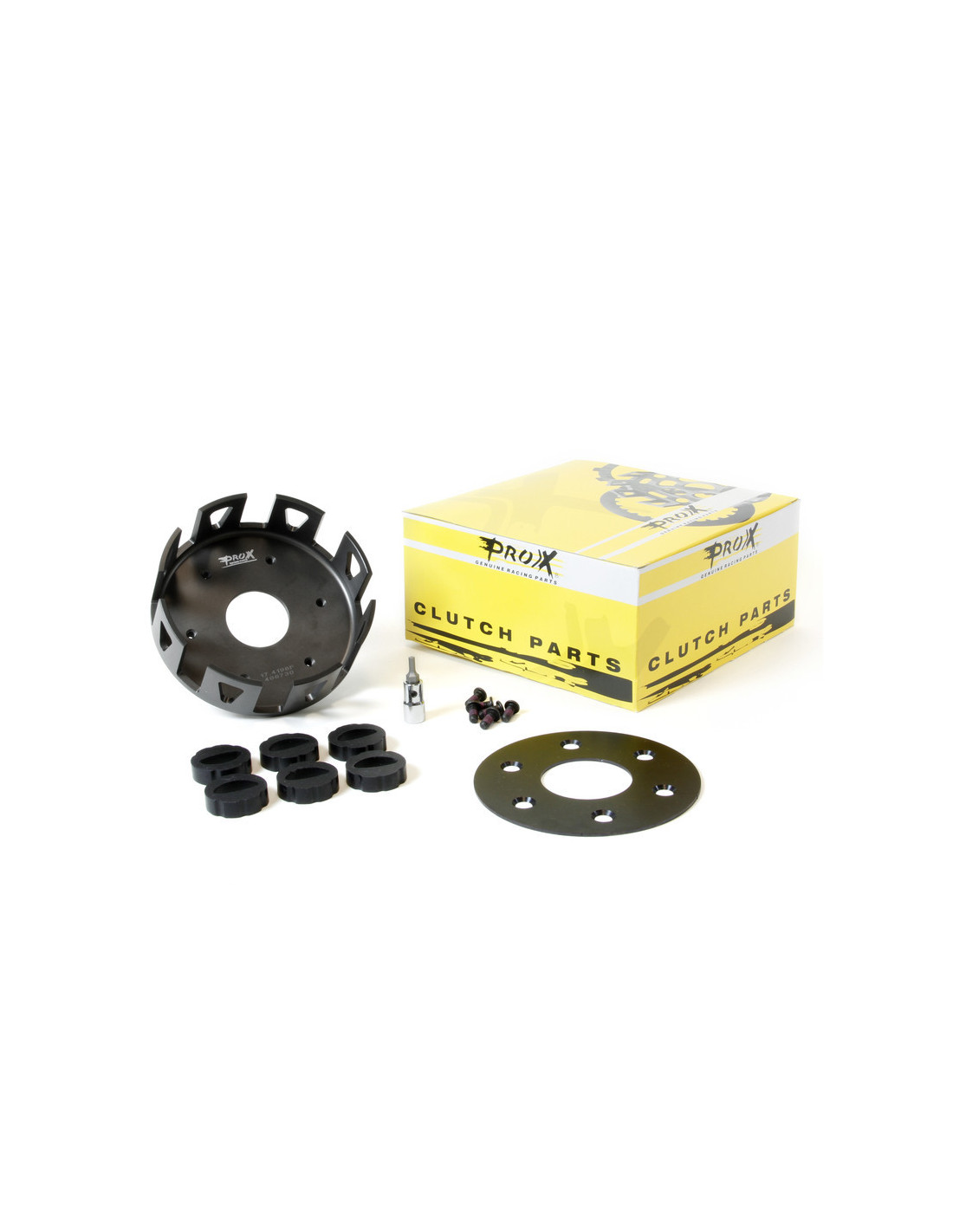 CLUTCH BASKETS ProX Clutch Baskets are precision machined from heat treated aircraft Billet 7075-T6 aluminium alloy to O.E. precision standards. Sophisticated hard-anodising guarantees extended life under severest racing conditions. Each kit comes with the necessary hardware to make installation a snap. Design Our clutch baskets are designed to maximize strength through “feature aligned grain flow” and utilizes as-forged features that can only be produced using our precision process. We are able to produce higher mechanical properties and resistance to impact and fatigue. Hard anodized All our clutch baskets are hard anodyzed to produce an ultra tough abrasive resistant surface and ensures a long life of smooth clutch operation through the elimination of wear on the sides of the clutch basket tabs. Teflon Coated The special added Teflon coating seals the coating to create a near frictionless surface for the clutch plate tabs to glide upon. All our clutch baskets comes with pre-applied thread locker fasteners and an inbus tool.