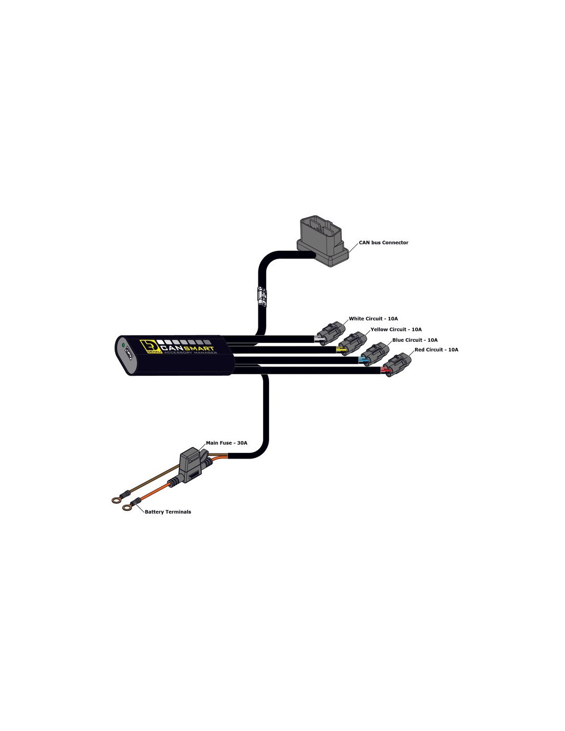 Contrairement au CANsmart Gen I, les quatre circuits du Gen II peuvent fournir une puissance continue de 10 ampères et chaque circuit peut être configuré pour faire fonctionner n'importe quel type d'accessoire. La puissance maximale absorbée par l'ensemble de l'unité reste de 30 ampères continus. Le Gen II dispose également d'un nouveau réglage des feux auxiliaires qui permet de moduler ces derniers pour une meilleure visibilité.