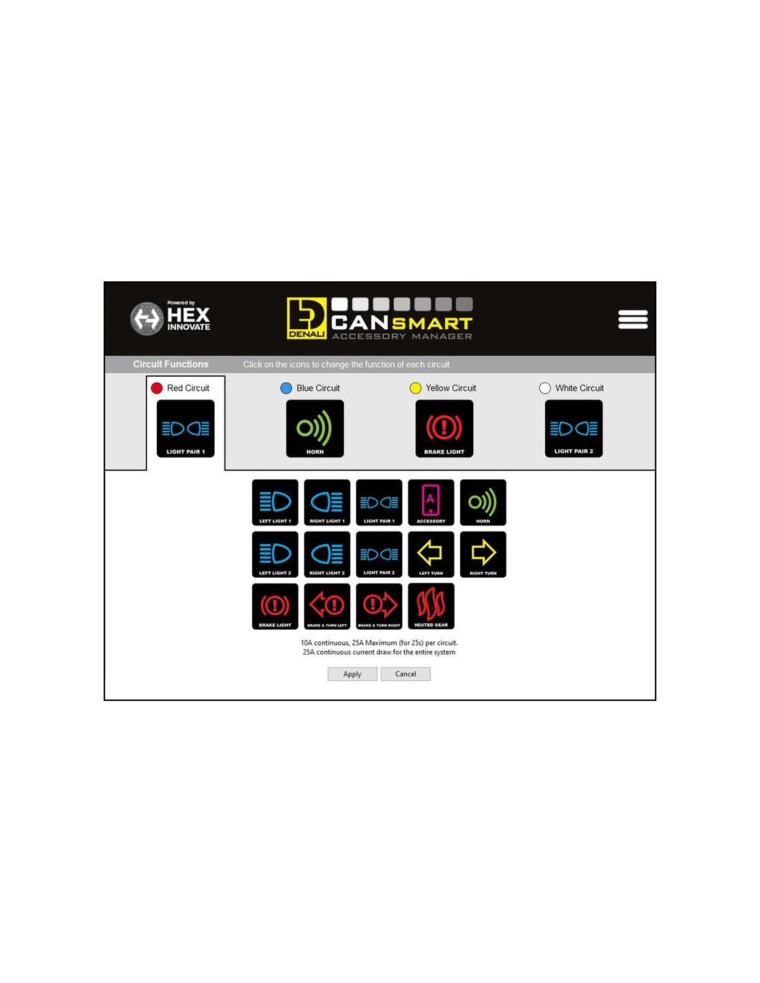 Contrairement au CANsmart Gen I, les quatre circuits du Gen II peuvent fournir une puissance continue de 10 ampères et chaque circuit peut être configuré pour faire fonctionner n'importe quel type d'accessoire. La puissance maximale absorbée par l'ensemble de l'unité reste de 30 ampères continus. Le Gen II dispose également d'un nouveau réglage des feux auxiliaires qui permet de moduler ces derniers pour une meilleure visibilité.