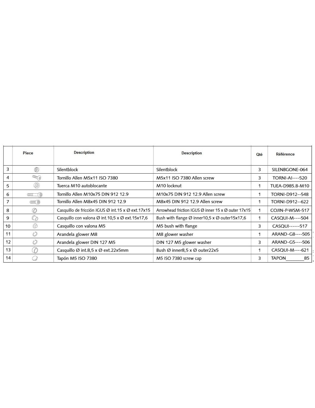 Kit Visserie pour garde boue arriere PUIG type S BMW R NINE T. ensemble de vis et entretoise vendu par lot.