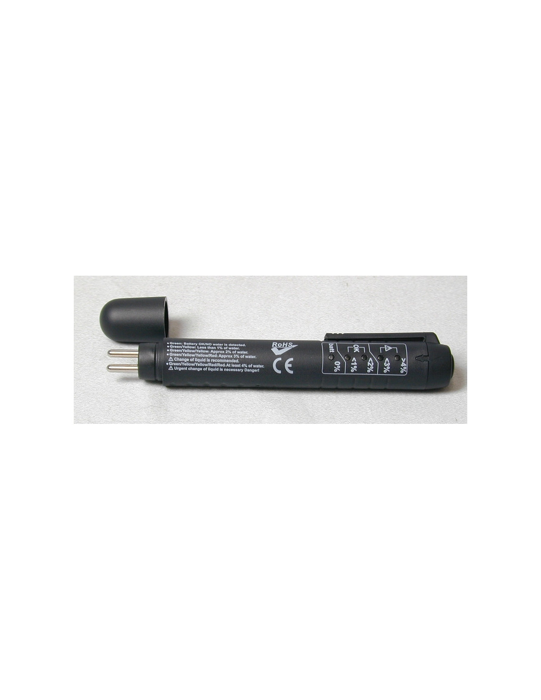 Cet outil permet de contrôler rapidement et facilement la teneur en eau contenue dans le liquide de frein de votre véhicule afin de savoir quand le changer. Mode d’emploi fourni avec le testeur