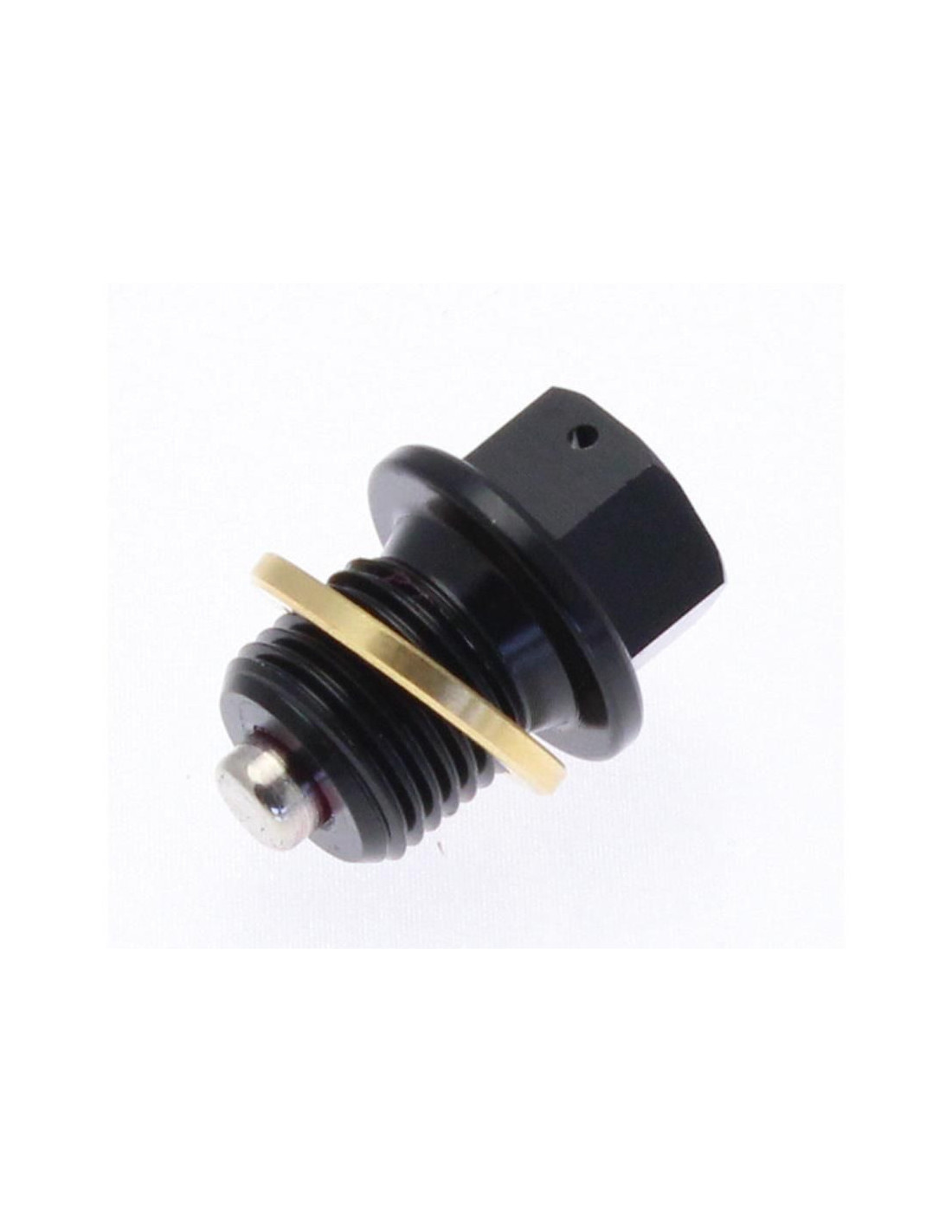 Bouchon de vidange en aluminium anodisé noir.