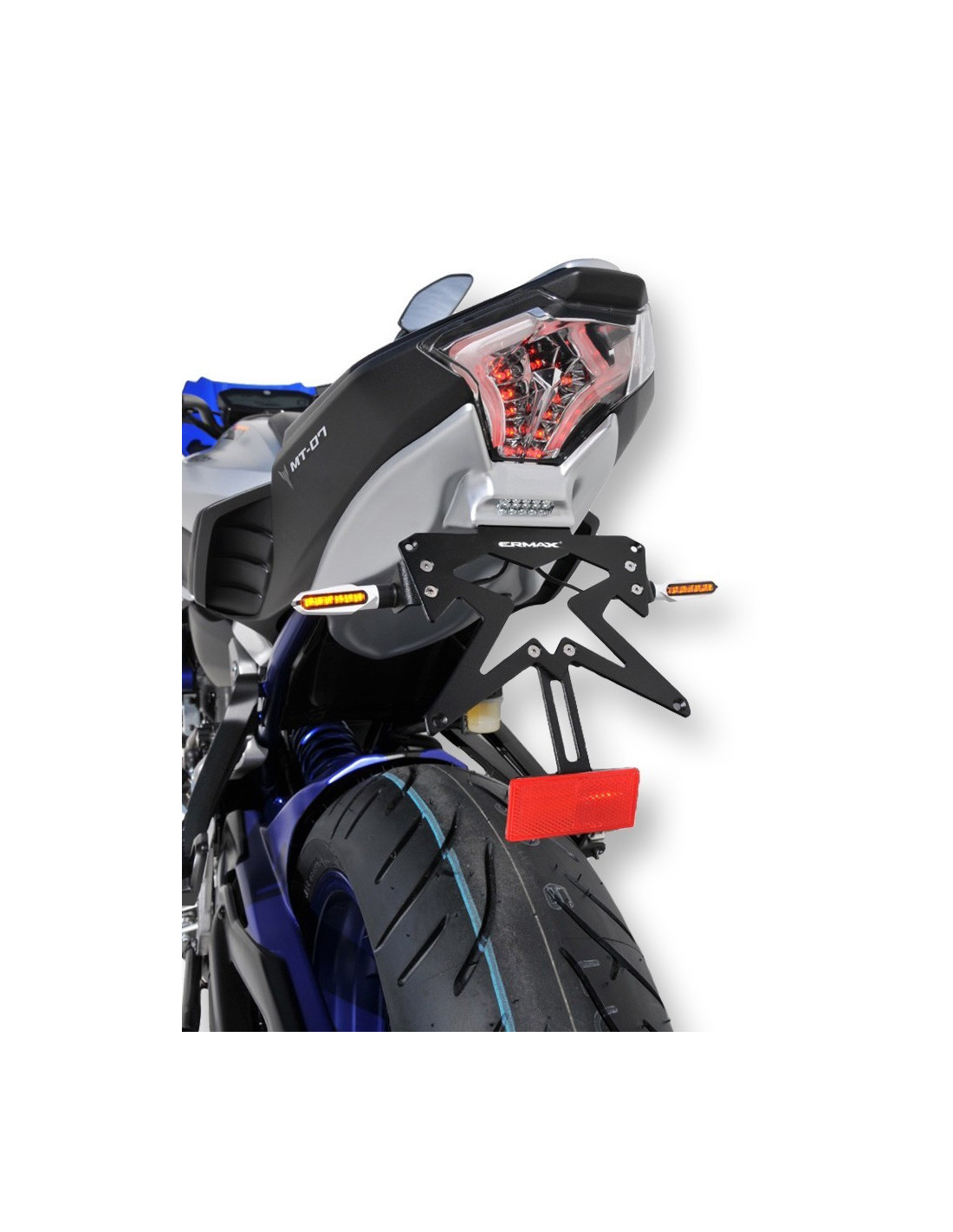 Ce passage de roue Ermax change radicalement l’arrière de votre MT-07 / FZ-07 en habillant et colorant le dessous de selle. Il permet de supprimer la bavette arrière et de remonter la plaque d’immatriculation sur le support métallique fourni. L’éclairage de plaque est intégré dans le passage de roue.