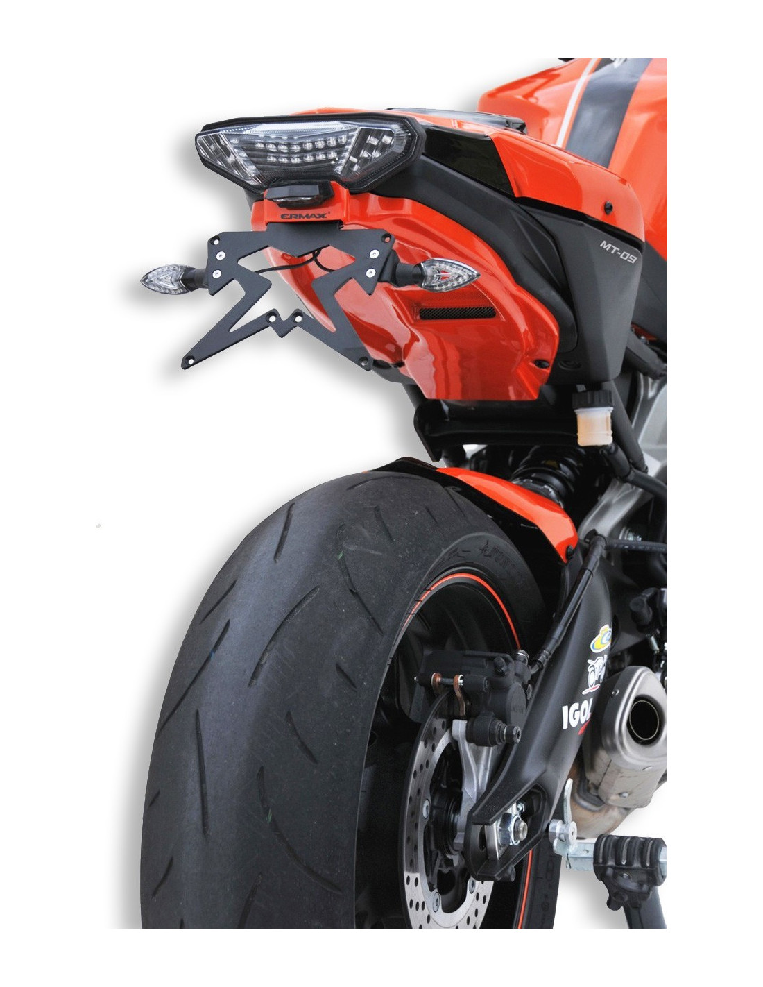 Ce passage de roue Ermax change radicalement l’arrière de votre MT-09 / FZ-09 2014/2016 en habillant et colorant le dessous de selle. Il permet de supprimer la bavette arrière et de remonter la plaque d’immatriculation sur le support métallique fourni. Il est livré avec une grille à coller en option au niveau de l'entrée d'air.